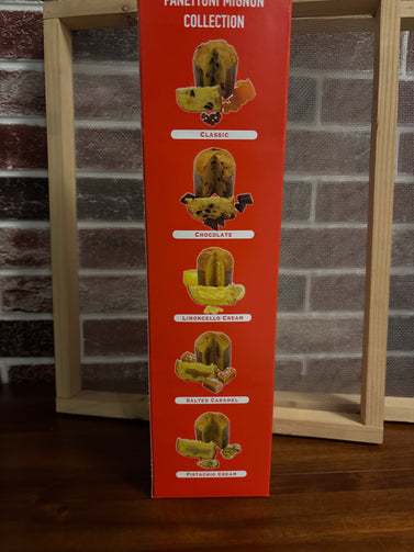 Indulge in the Chiostro Di Saronno Specialita Panettoni Mignon Collection. With five delicious flavors to choose from - classic, chocolate, limoncello cream, salted caramel, and pistachio cream - this collection is sure to please any palate. Satisfy your sweet tooth with these delectable treats.