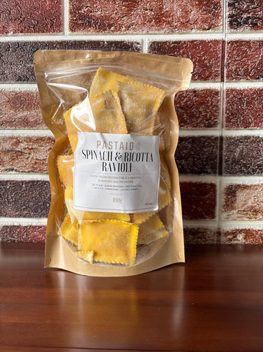 "Indulge in our delicious Spinach + Ricotta Ravioli, made with fresh spinach and creamy ricotta cheese, all wrapped in delicate sheets of pasta. Enjoy the perfect combination of flavors and textures in every bite. Made with high-quality ingredients for a truly authentic taste. Each pack contains 400g of ravioli, perfect for a quick and convenient meal."